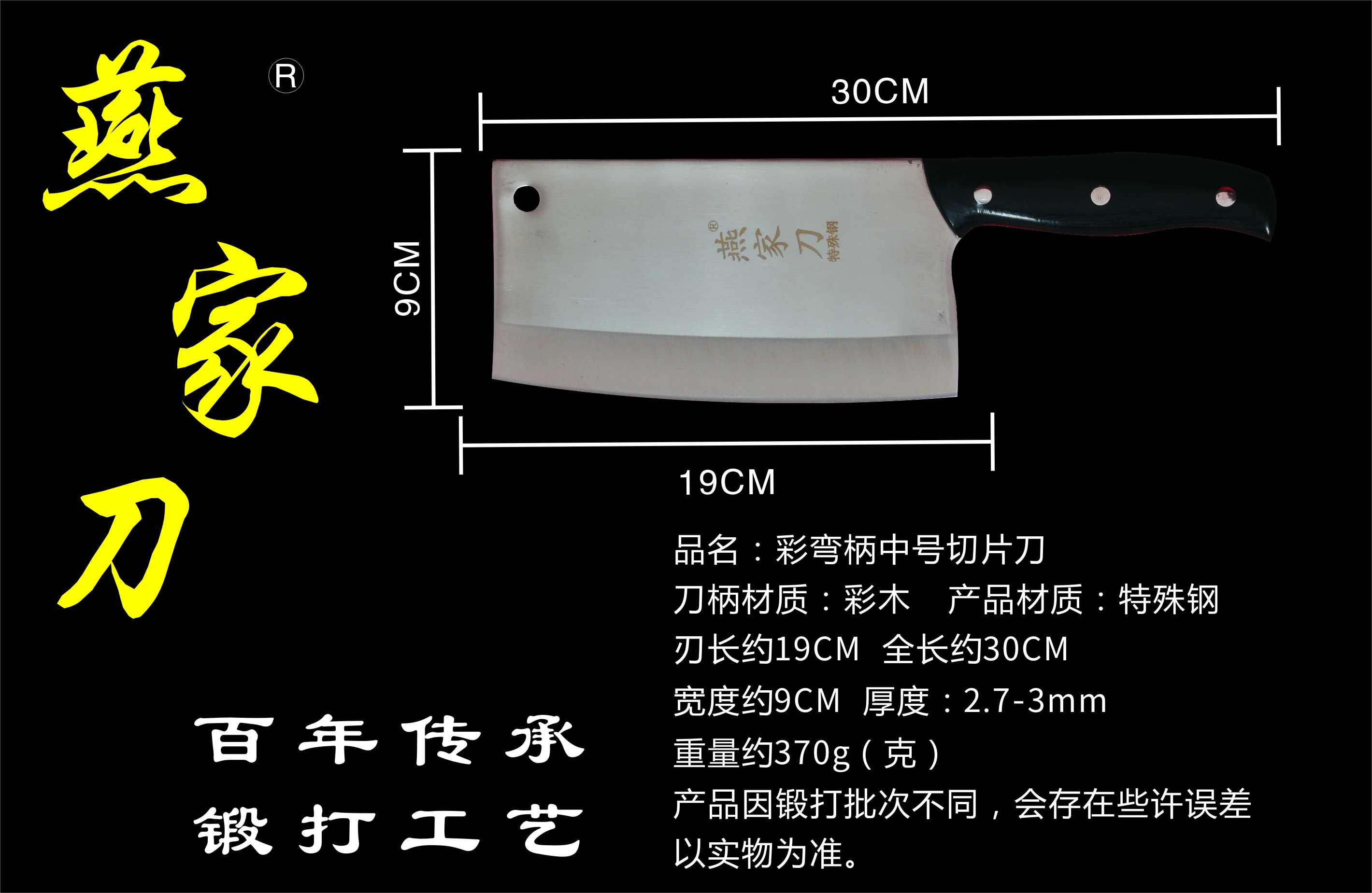 樂山燕家刀具有限公司(公司前身為燕佳鐵匠鋪),公司坐落于美麗的佛都之鄉(xiāng)樂山嘉州,在全國各地有上千家代理經(jīng)銷點(diǎn),公司專業(yè)銷售、設(shè)計(jì)、制作各類刀具。秉承一貫鍛造三精要求,即選料精、用料精、工藝精。所選材料全部產(chǎn)自滇東鐵礦優(yōu)產(chǎn)區(qū)。本品牌刀具堅(jiān)持千挑萬選為材,千錘百煉為刀的手工鍛造工藝宗旨。具有鋒利耐磨、持久耐用,用料上乘,硬度高、韌度強(qiáng)的特點(diǎn)!